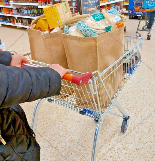 10 x Large Jute Burlap Tote Bags with Laminated Interior – Size 45cm x 39cm x 21cm – Waterproof Reusable Hessian Bags with Handles – Eco-Friendly Gift Bags for Shopping, Beach, Crafting